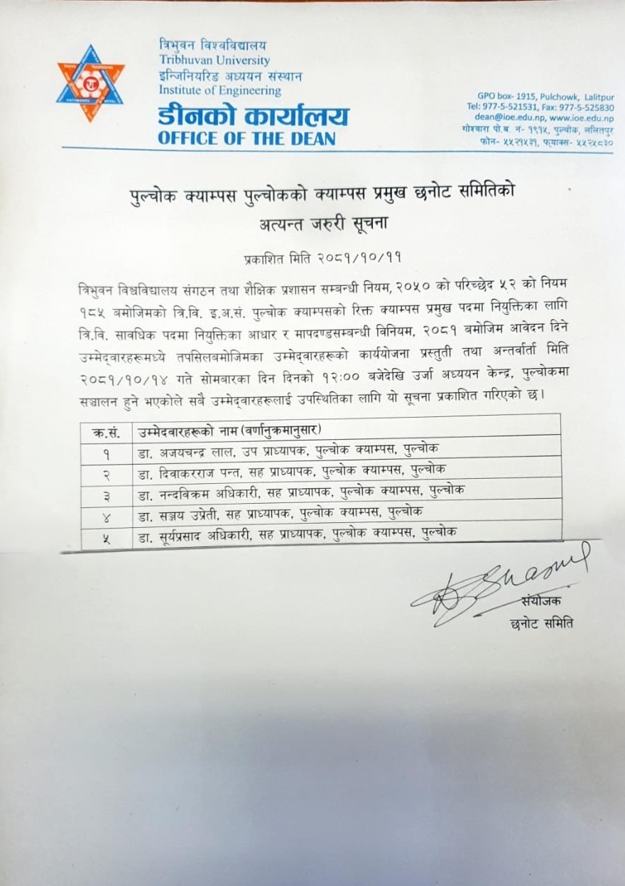 पुल्चोक क्याम्पस क्याम्पस प्रमुख छनोट सम्बन्धी सुचना !!