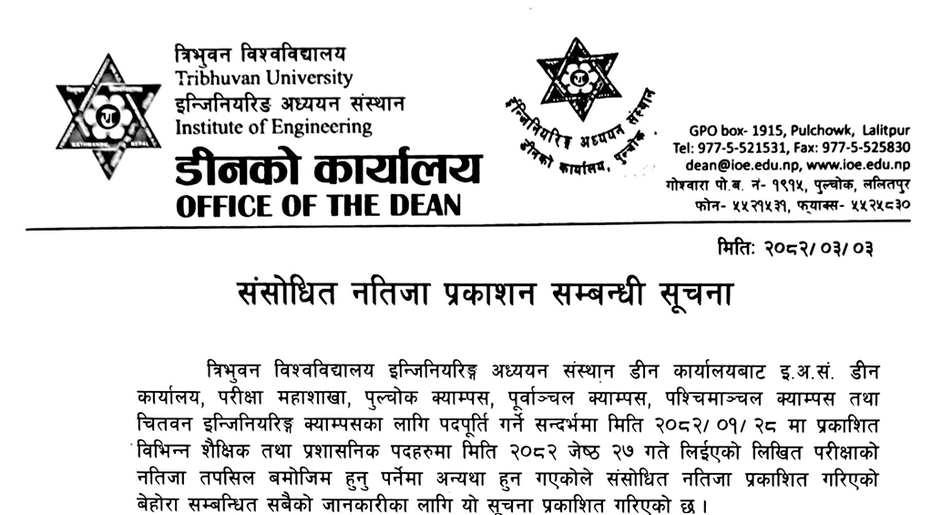 स्नातकोत्तर (M.Sc.) तहको प्रवेश परीक्षा सम्बन्धी स...