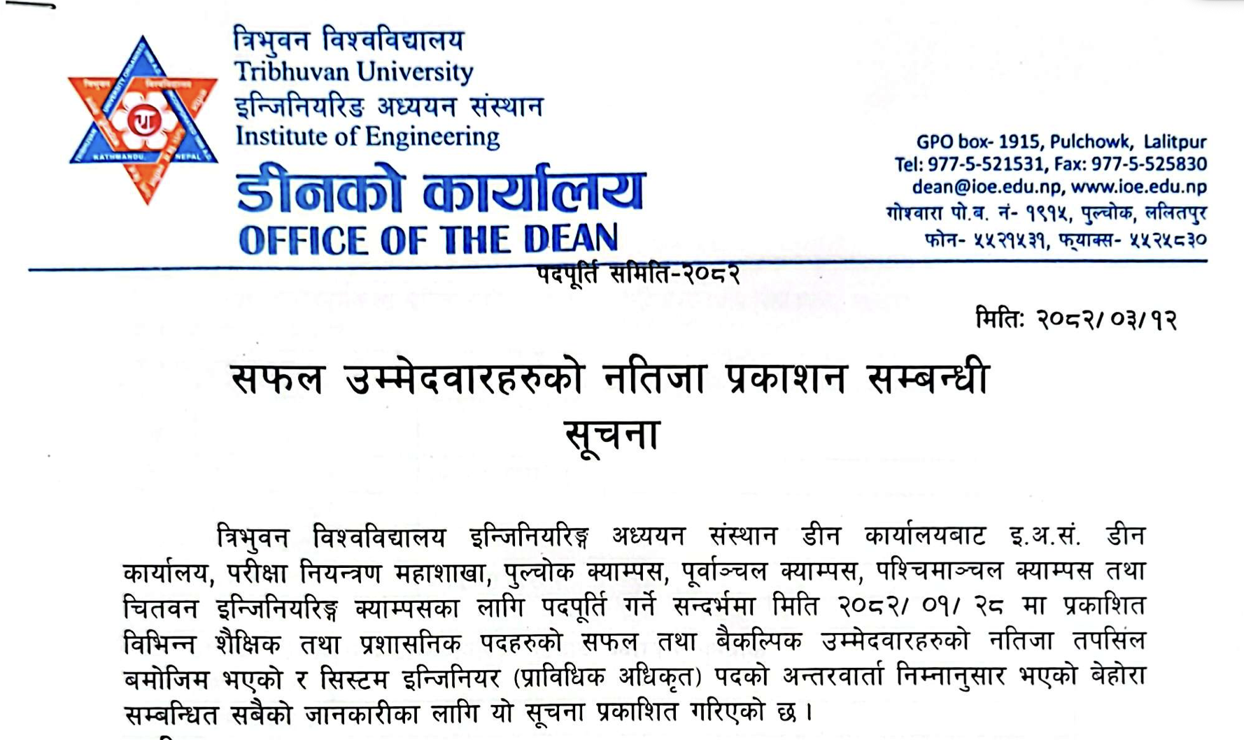 IOE Vacancy Result